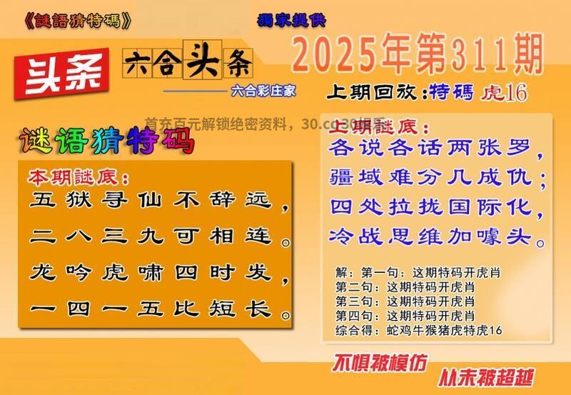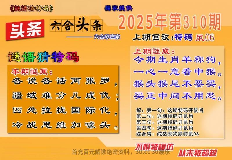 315期:六合四字诗/半数书中料/精准六肖料/歇后爆平特/精准四字
