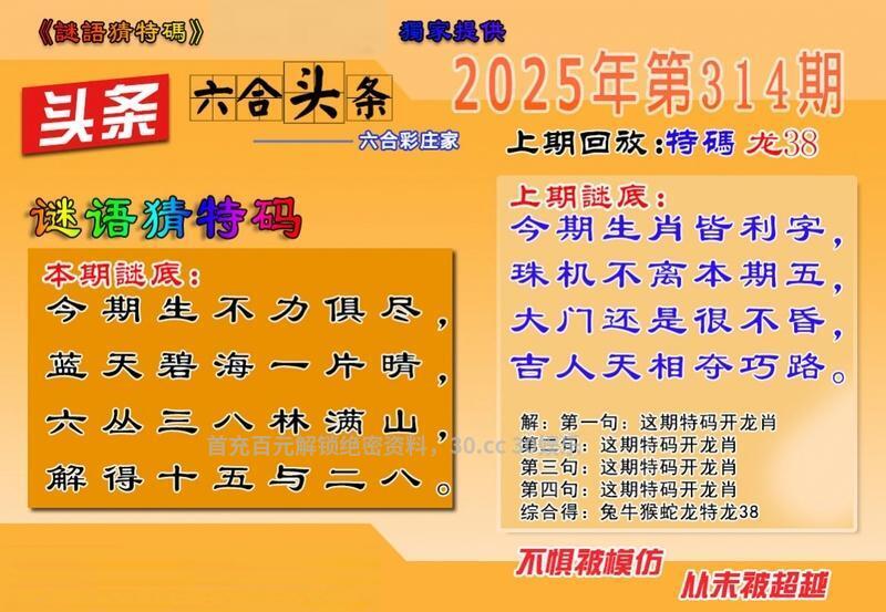 315期:成语解平特/六合皇五字/一句猜中特/一句解平诗/原创密诗